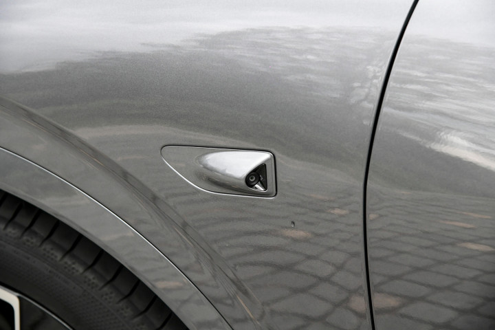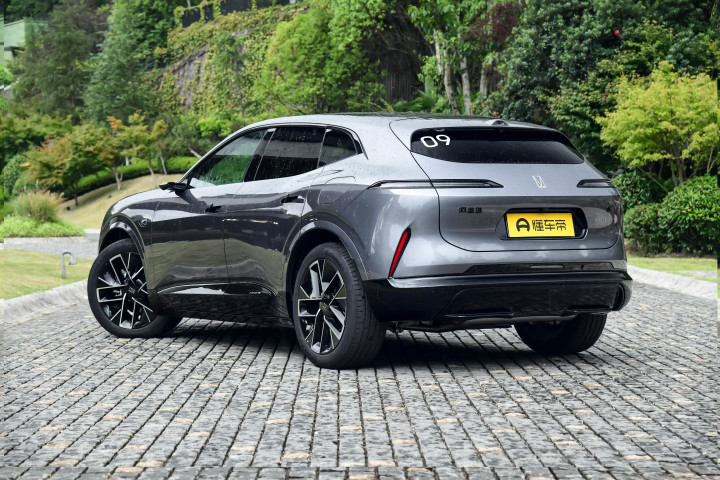 跟随镜头来到这款车型的侧面部分,阿维塔07的侧面造型设计依旧保持个性化设计属性,这也与它的整体设计调性如出一辙,采用的是相对圆润且大气的风格设计,敦实且修长的侧面造型带来满满的辨识度与三四个,而且在后翼子板部分采用相对厚重且肌肉感十足的造型设计,带来的是大气且魁梧的设计优势,同时匹配它大尺寸的轮毂设计,能够为车辆带来良好的视觉体验与设计优势;而阿维塔07的尾部设计能够明显看出它的家族化设计理念,尾部相对简单,与复杂的车头设计形成较为鲜明的䶏,而且尾部采用的也是微微溜背的设计风格,搭配纤细修长的尾灯设计,并且搭配发光的LOGO标识点缀,有效彰显出这款车型的设计优势与设计特点。